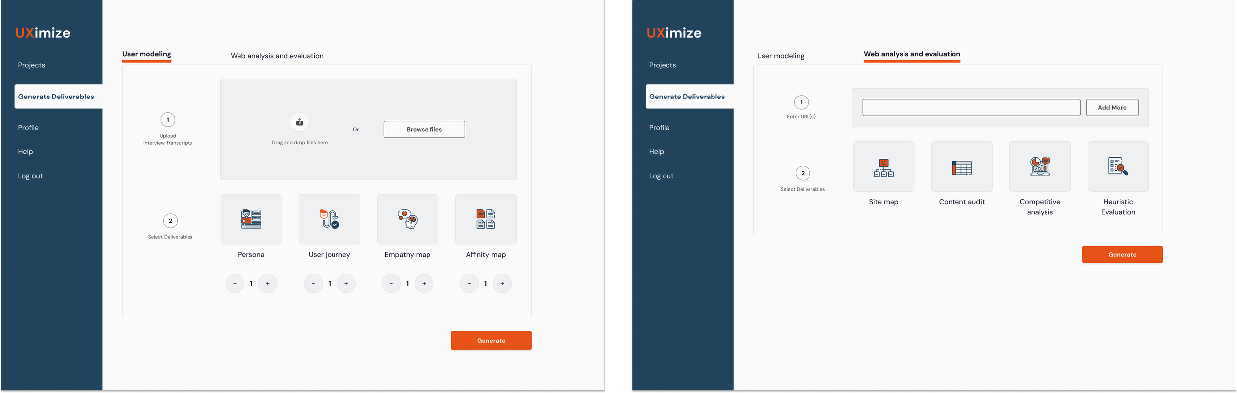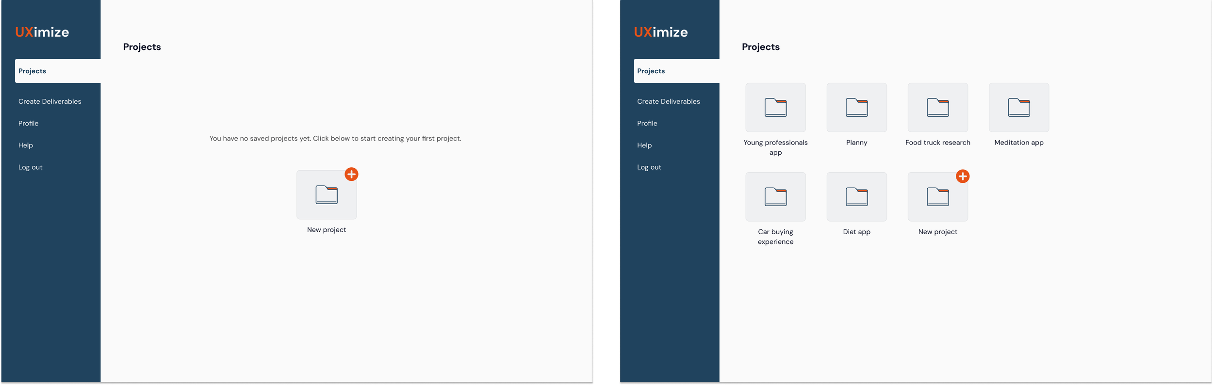 Additionally, I offered existing users the opportunity to start by generating deliverables and then saving them as a new project or adding them to an existing one.