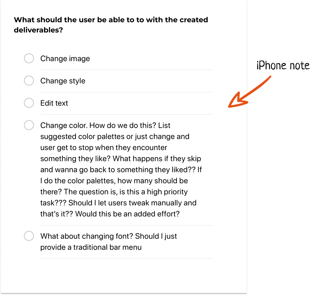 This was the easiest part! I thought of something that would help me in my daily UX work. So, I decided to build an AI-powered app that creates time-consuming UX deliverables like website audits or competitive analyses in a few seconds. Then, I thought, why not include user modeling deliverables, like personas and user journeys? And, there, I had my app idea.